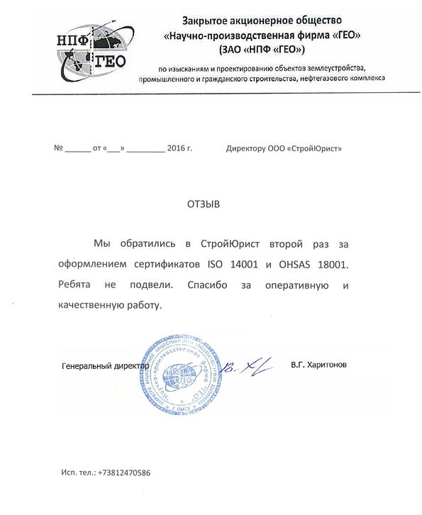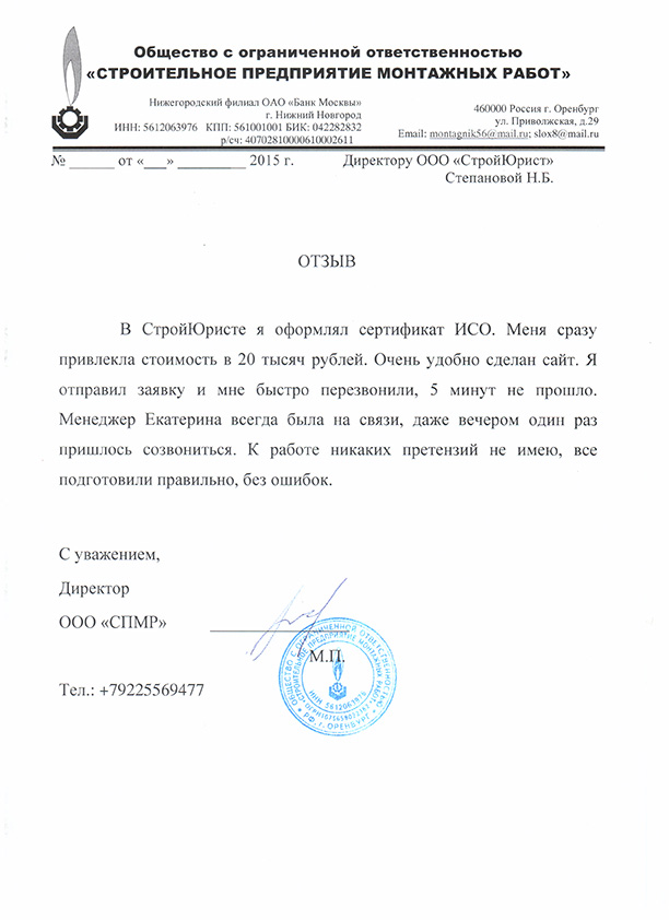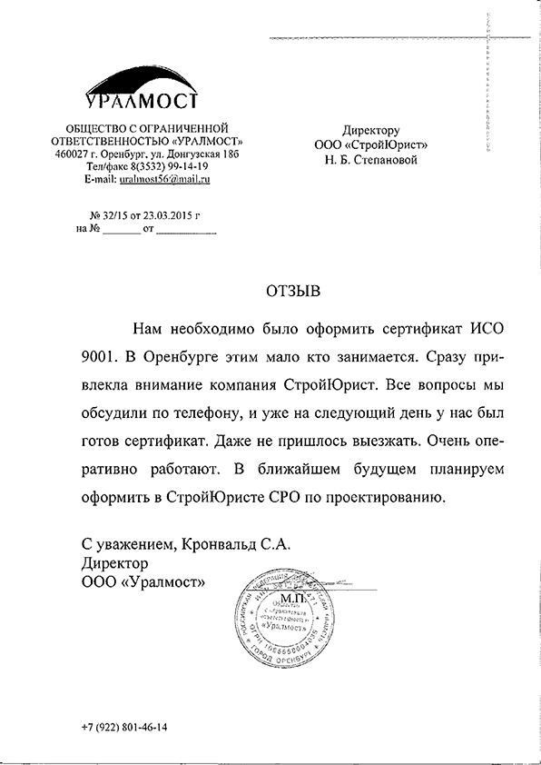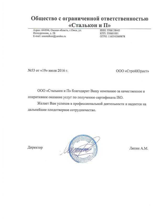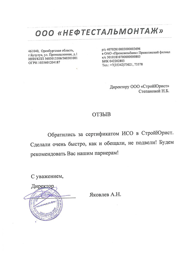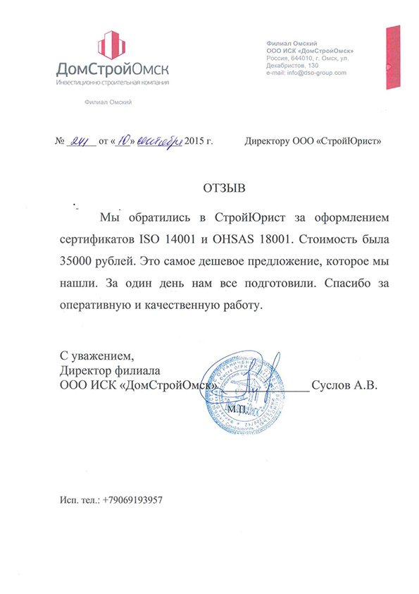 Отзывы клиентов "СтройЮрист" по ISO в Кисловодске