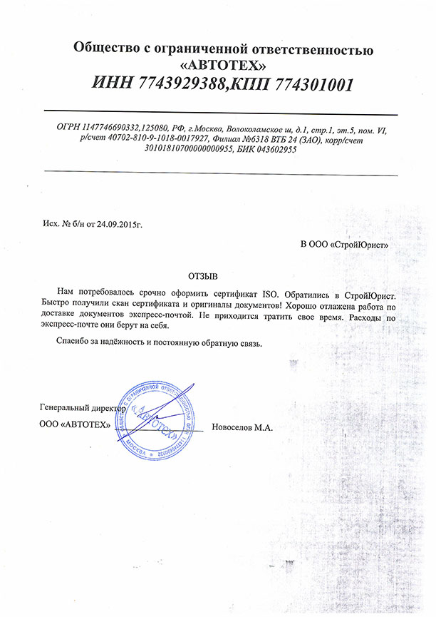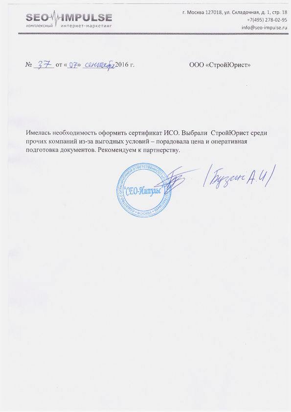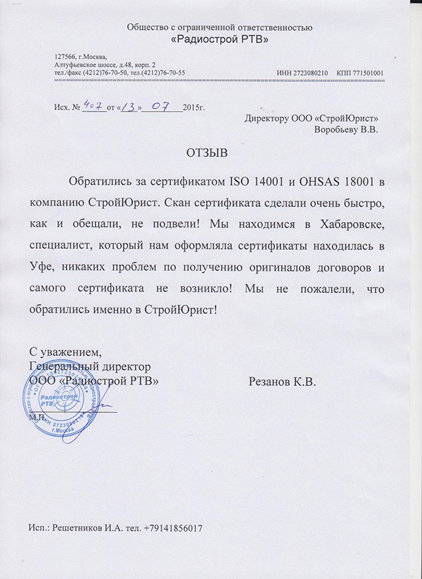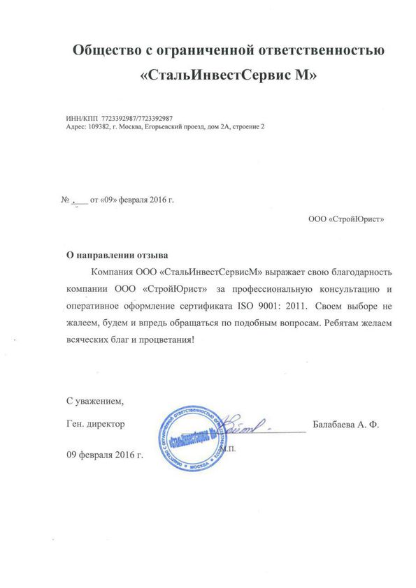 Отзывы клиентов "СтройЮрист" по ISO в Кисловодске