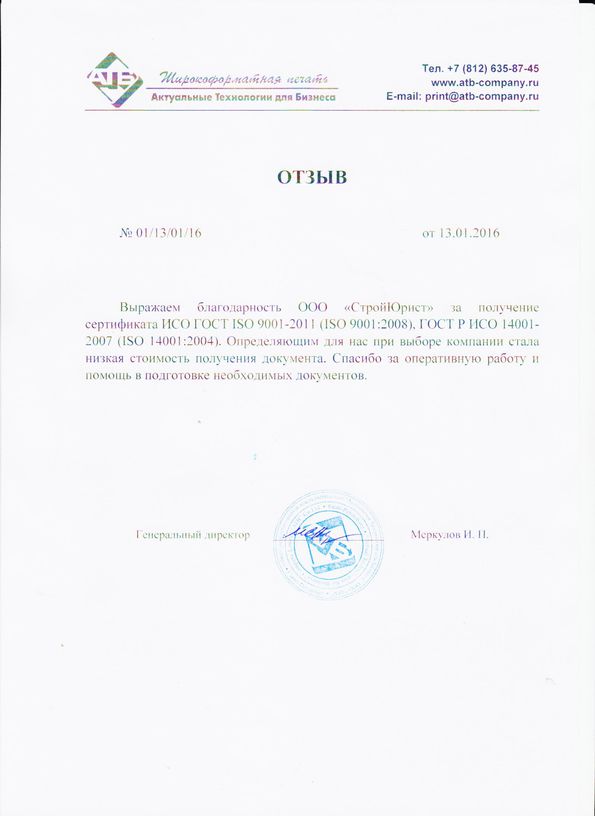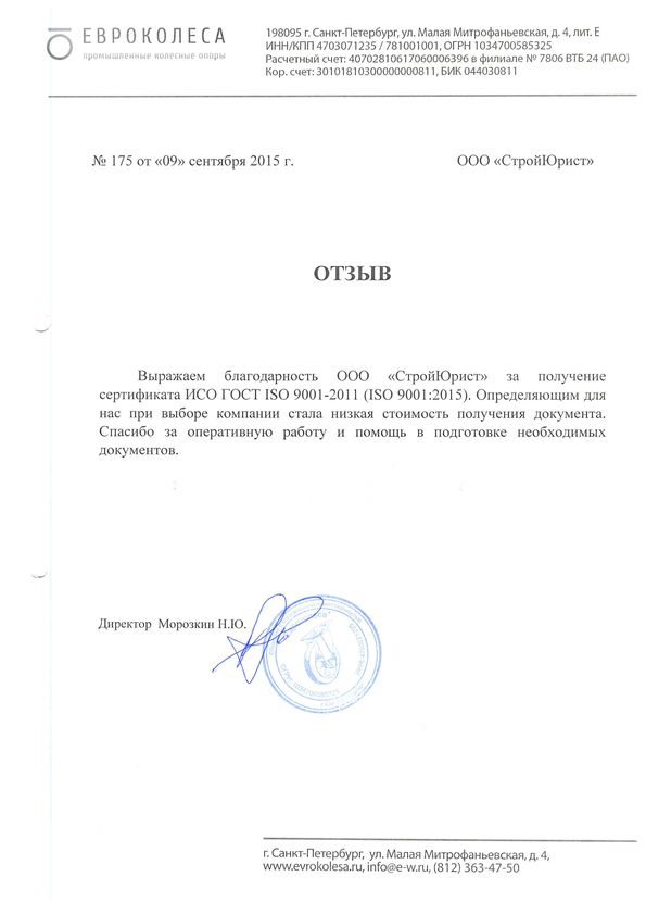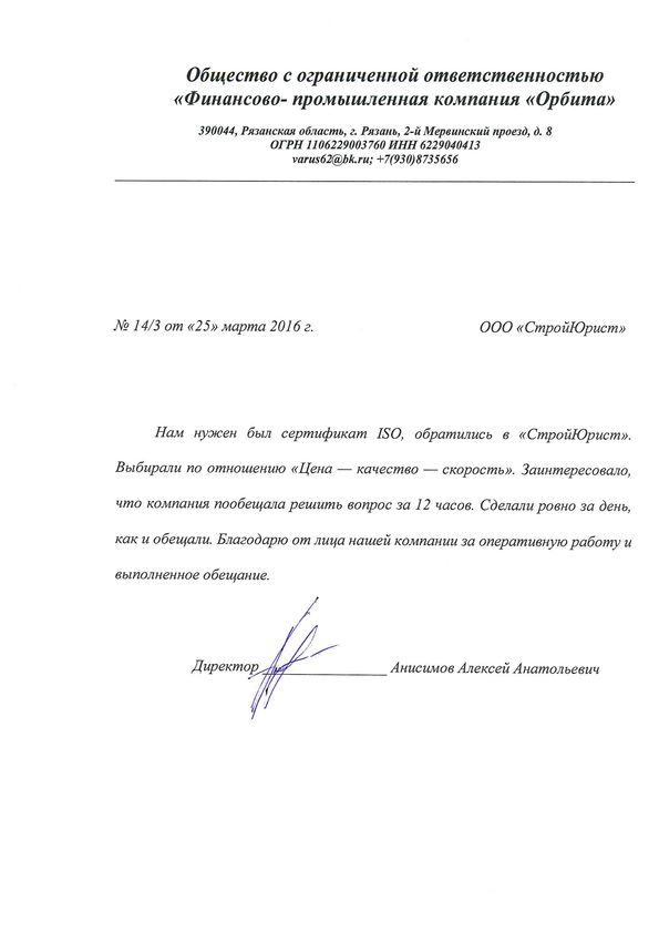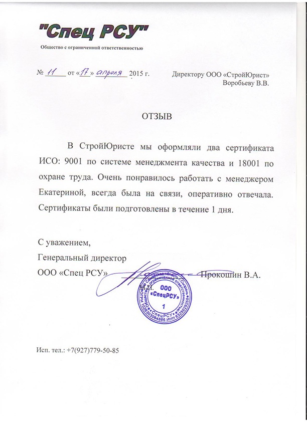 Отзывы клиентов "СтройЮрист" по ISO в Кисловодске