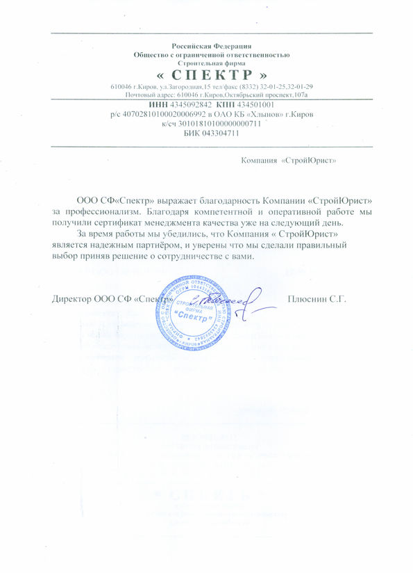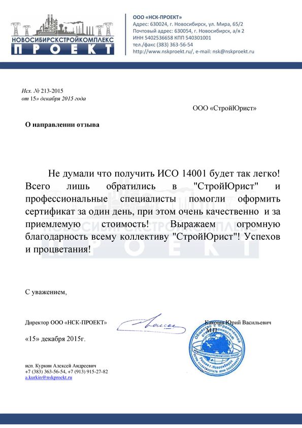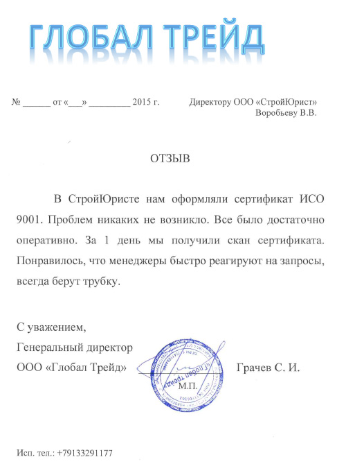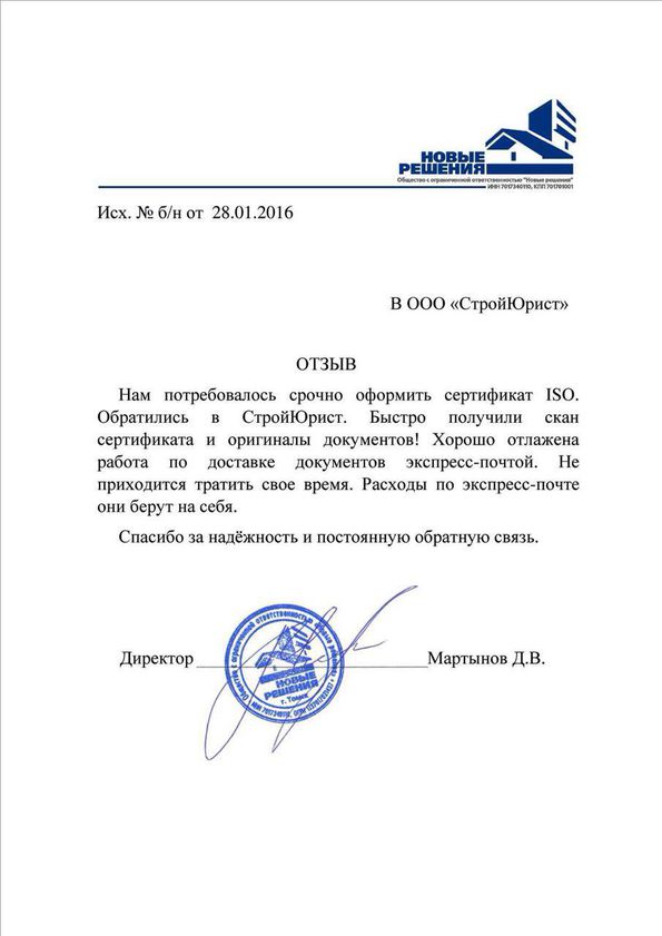 Отзывы клиентов "СтройЮрист" по ISO в Кисловодске