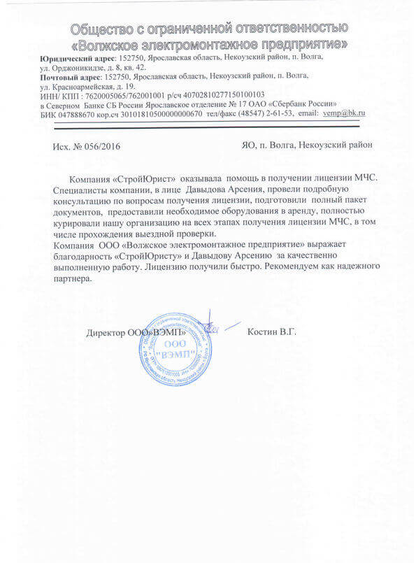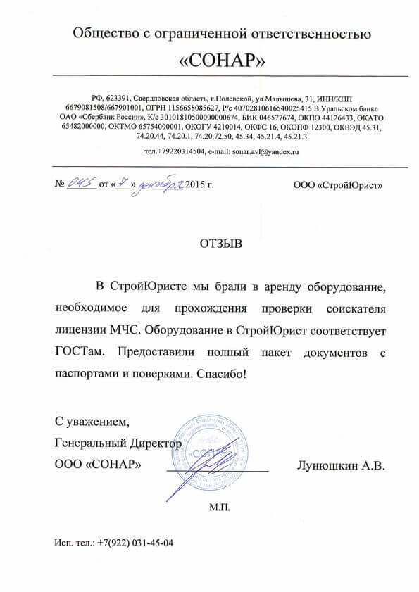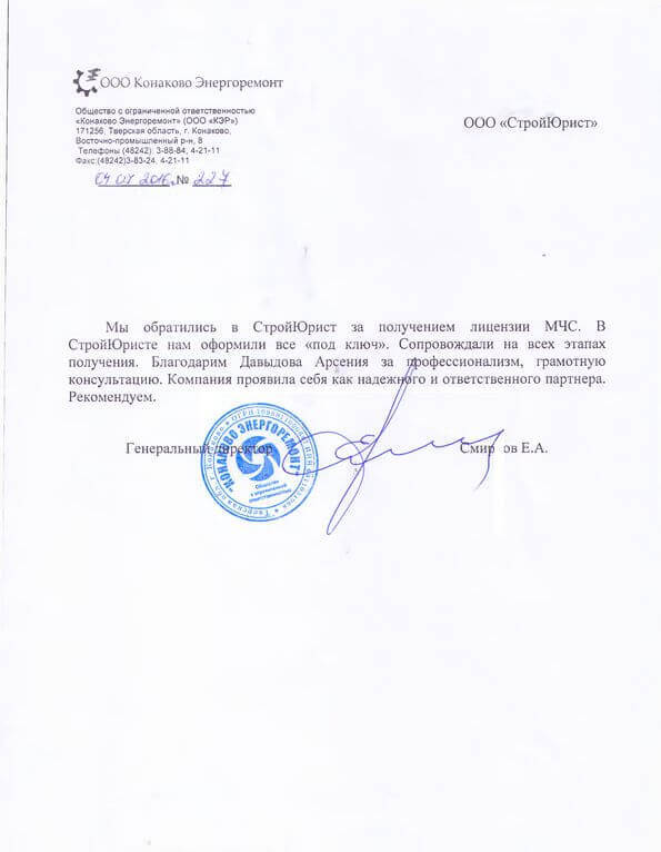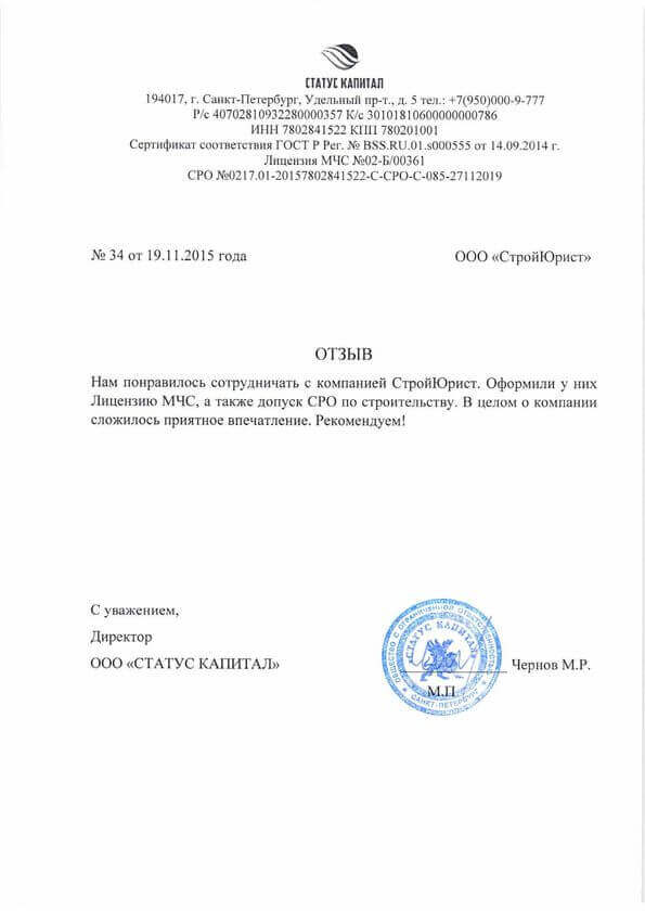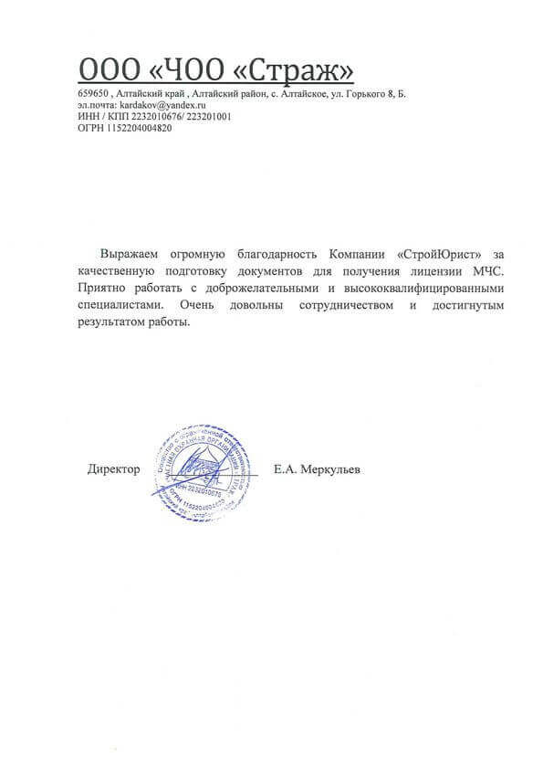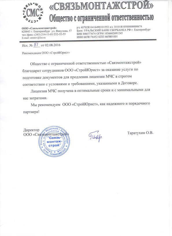 Отзывы клиентов "СтройЮрист" по лицензированию МЧС в Кисловодске