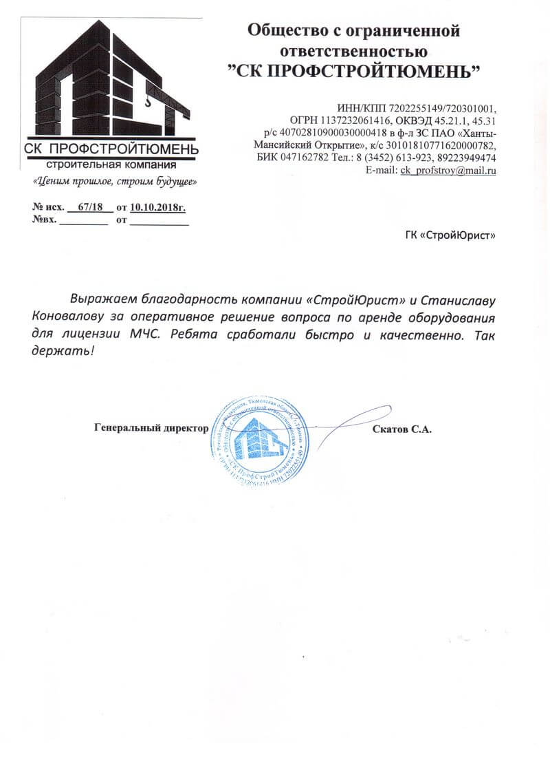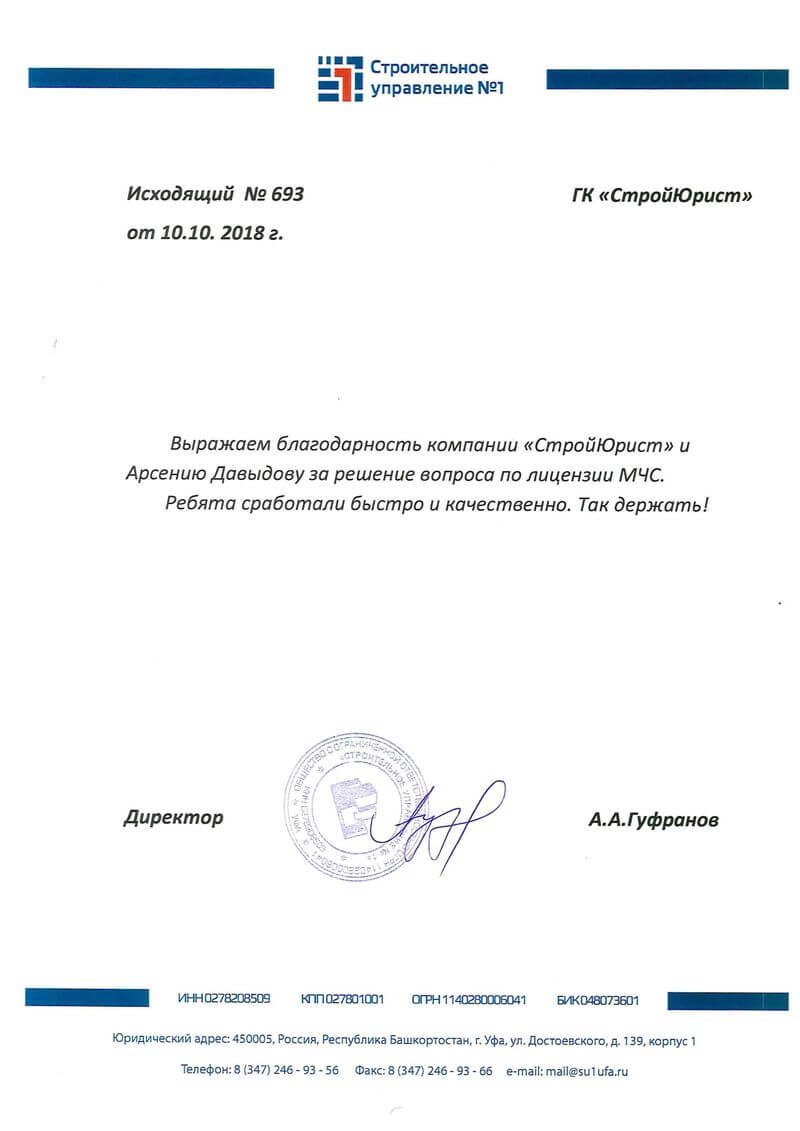 Отзывы клиентов "СтройЮрист" по лицензированию МЧС в Кисловодске
