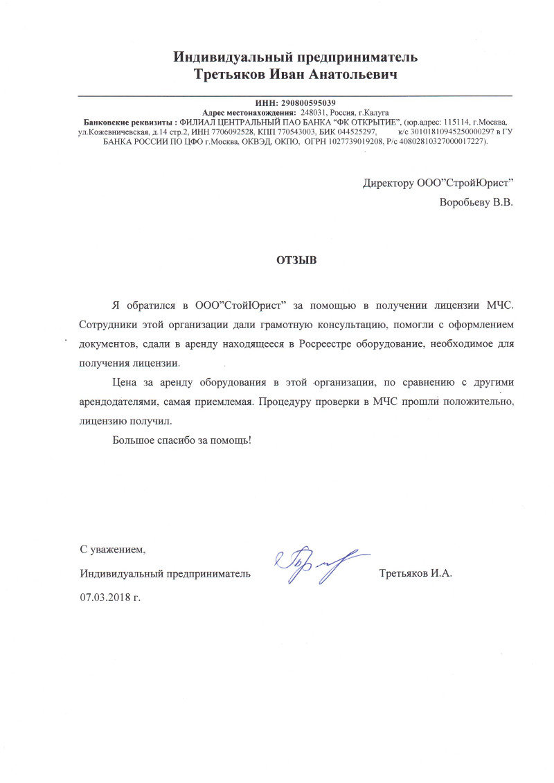 Отзывы клиентов "СтройЮрист" по лицензированию МЧС в Кисловодске