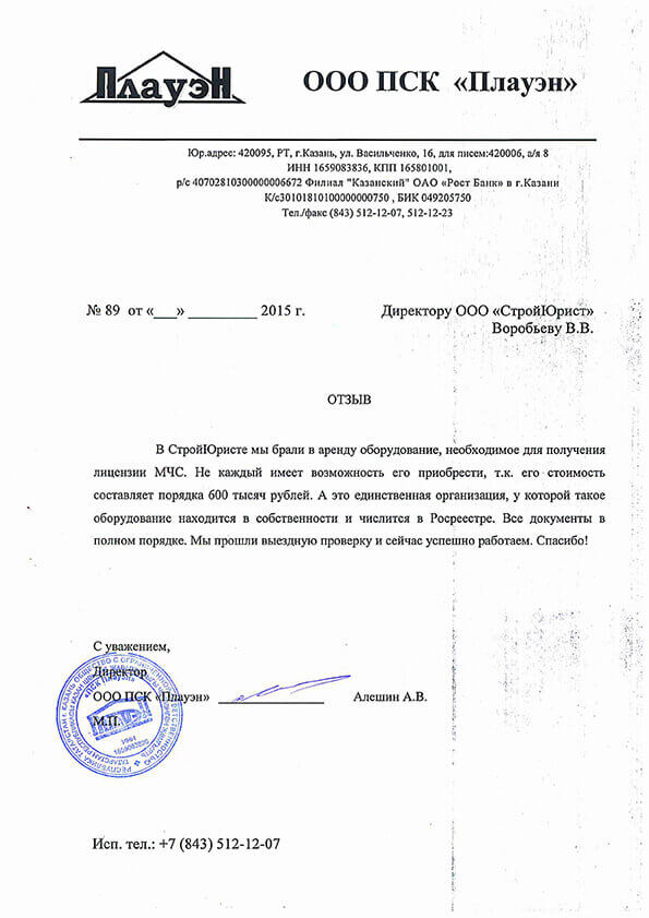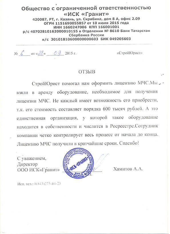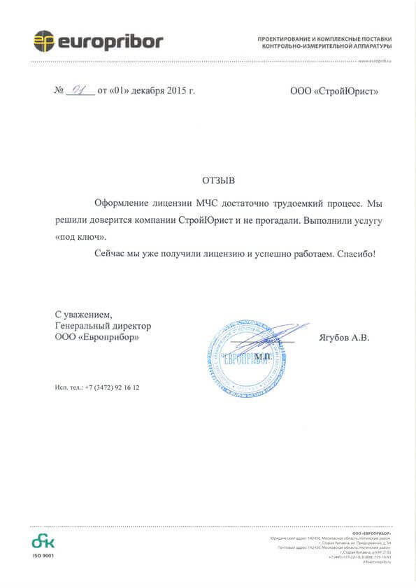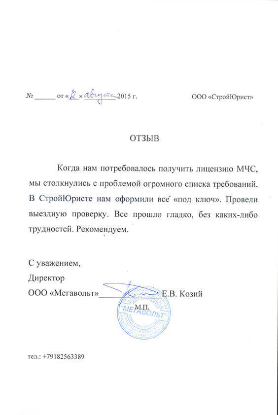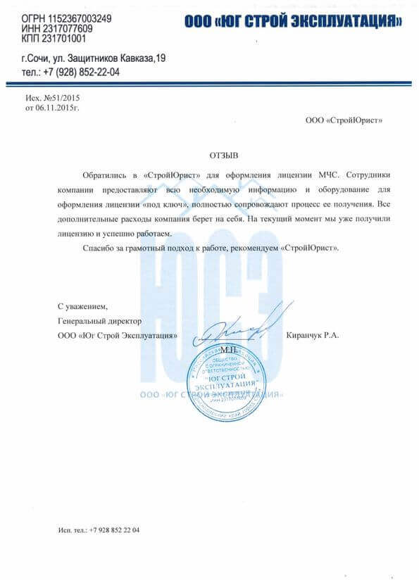 Отзывы клиентов "СтройЮрист" по лицензированию МЧС в Кисловодске