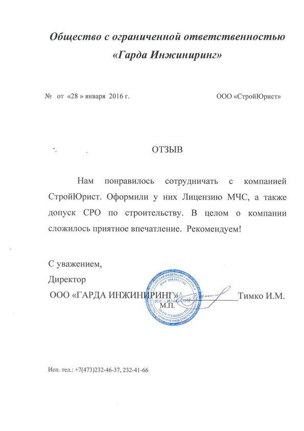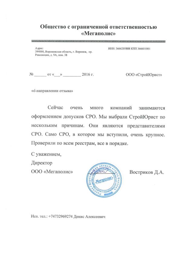 Отзывы клиентов "СтройЮрист" по вступлению в СРО в Кисловодске