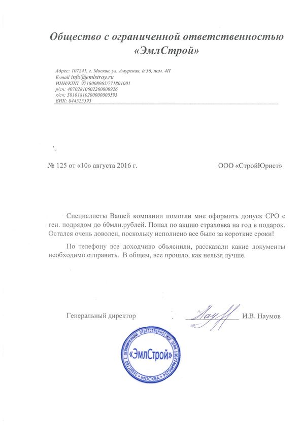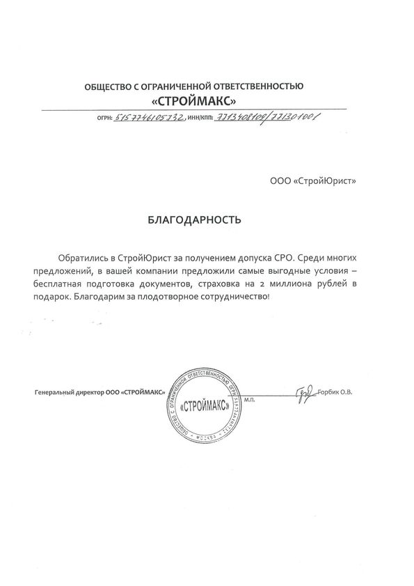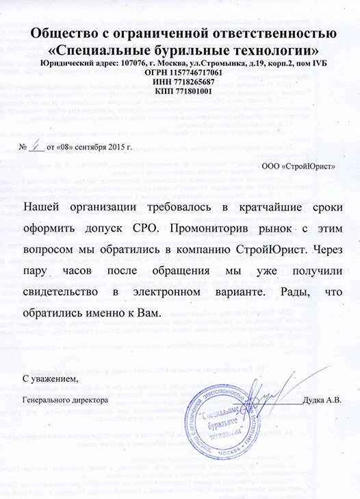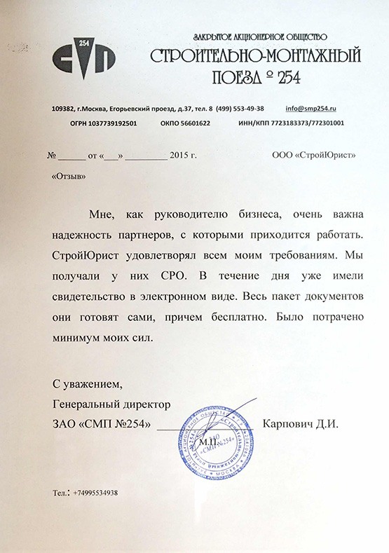 Отзывы клиентов "СтройЮрист" по вступлению в СРО в Кисловодске