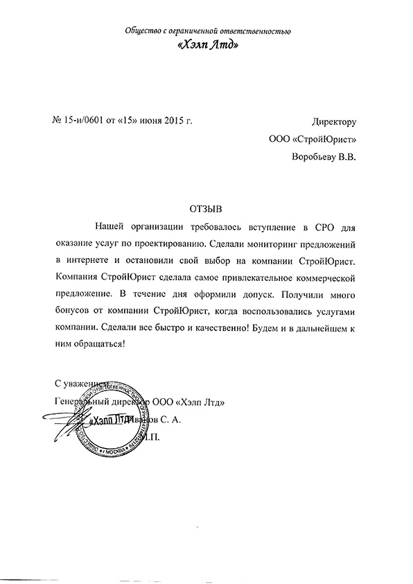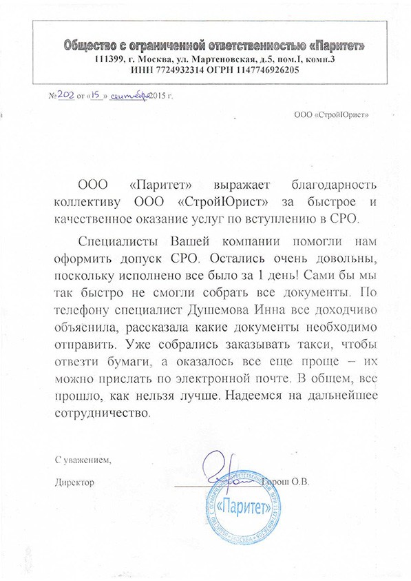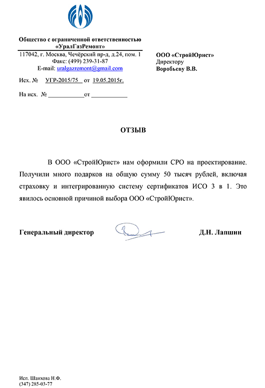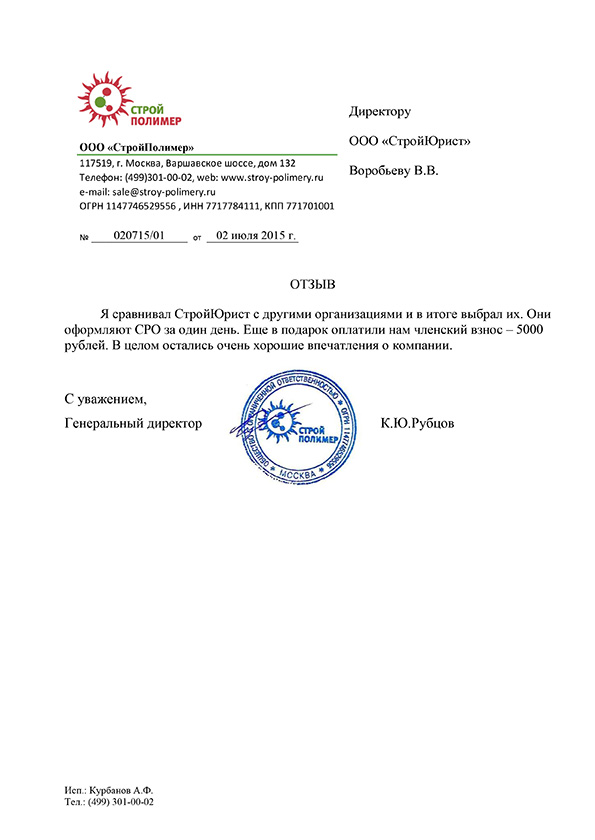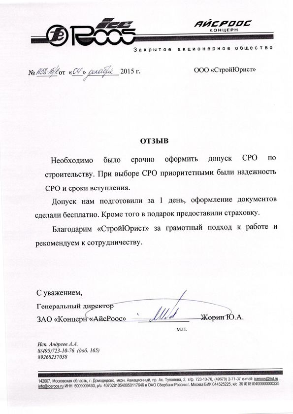 Отзывы клиентов "СтройЮрист" по вступлению в СРО в Кисловодске