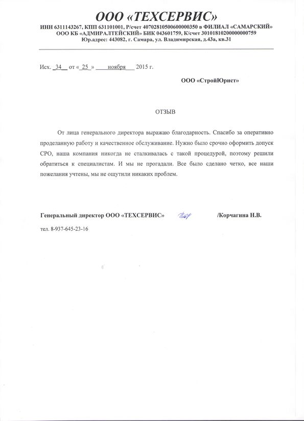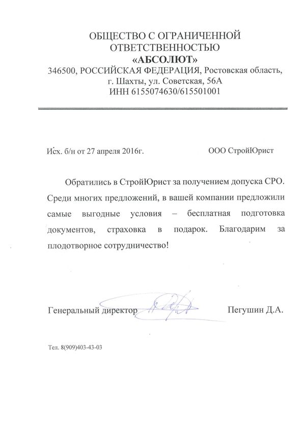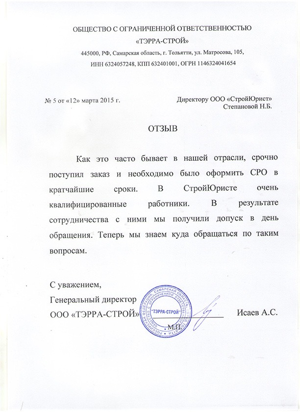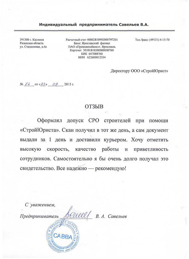 Отзывы клиентов "СтройЮрист" по вступлению в СРО в Кисловодске