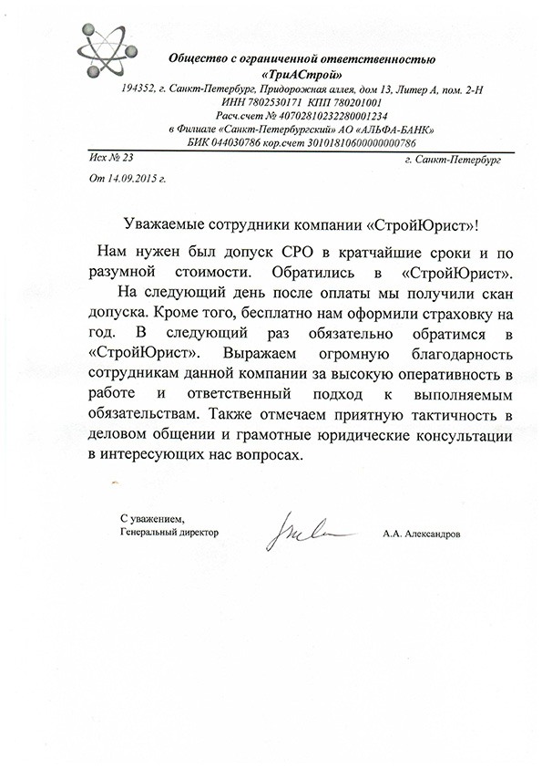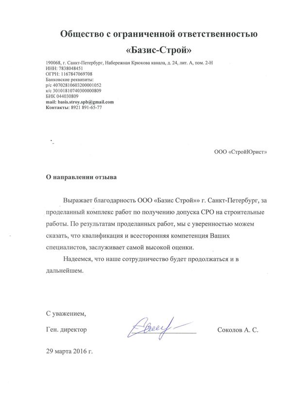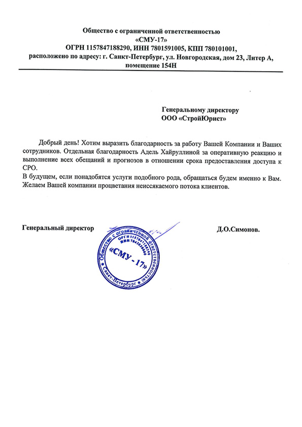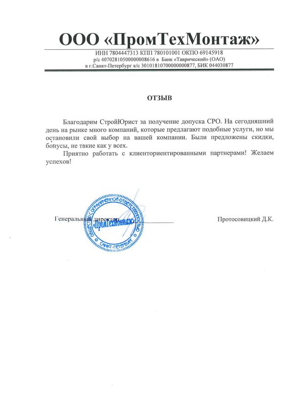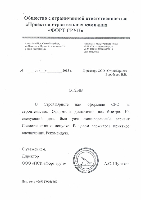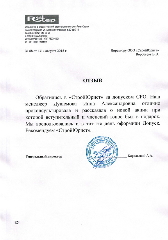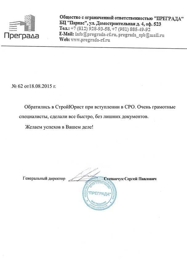 Отзывы клиентов "СтройЮрист" по вступлению в СРО в Кисловодске