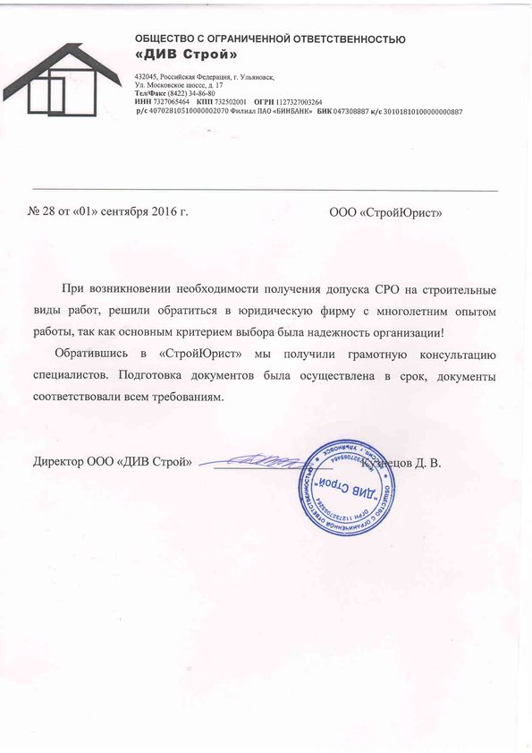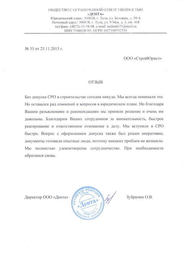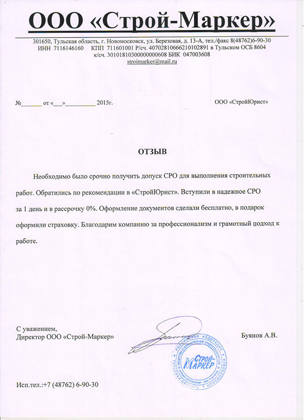 Отзывы клиентов "СтройЮрист" по вступлению в СРО в Кисловодске