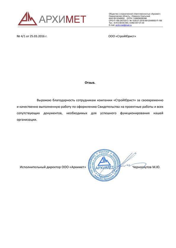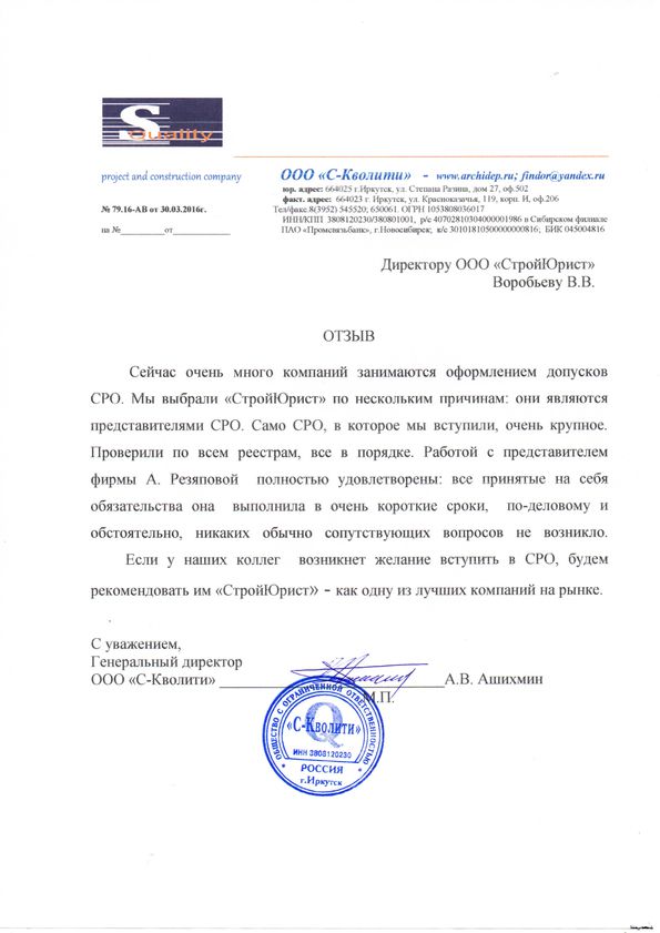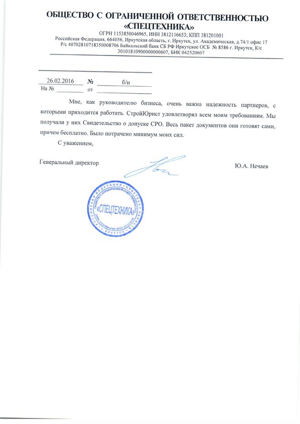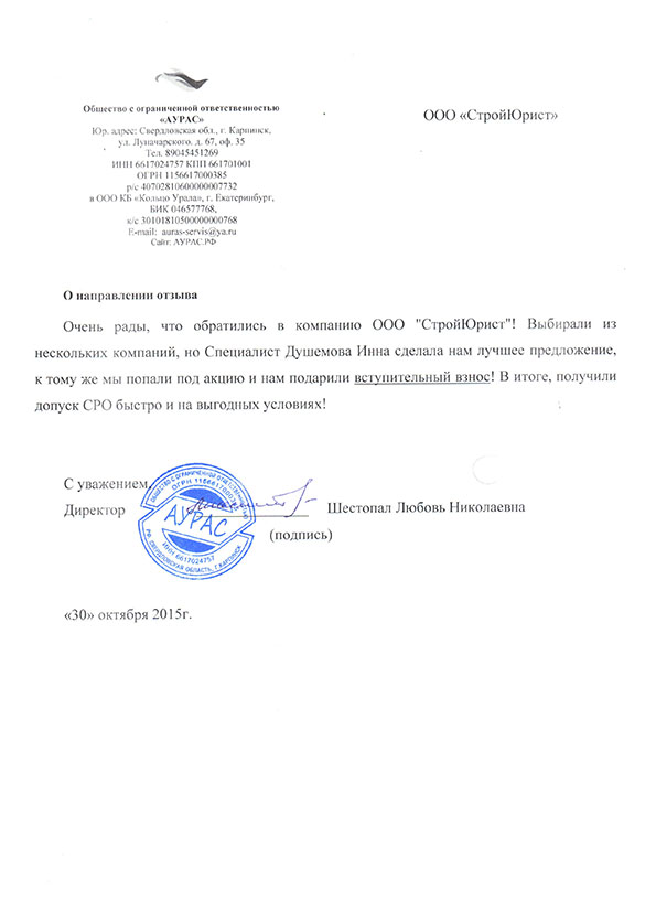 Отзывы клиентов "СтройЮрист" по вступлению в СРО в Кисловодске