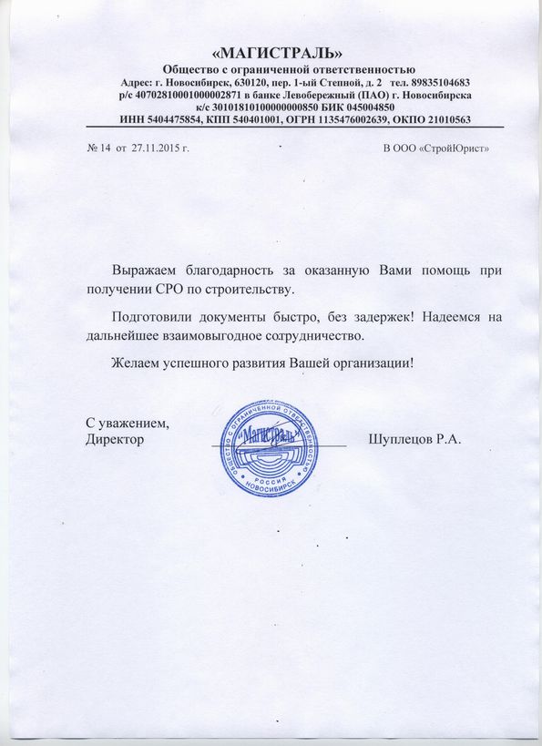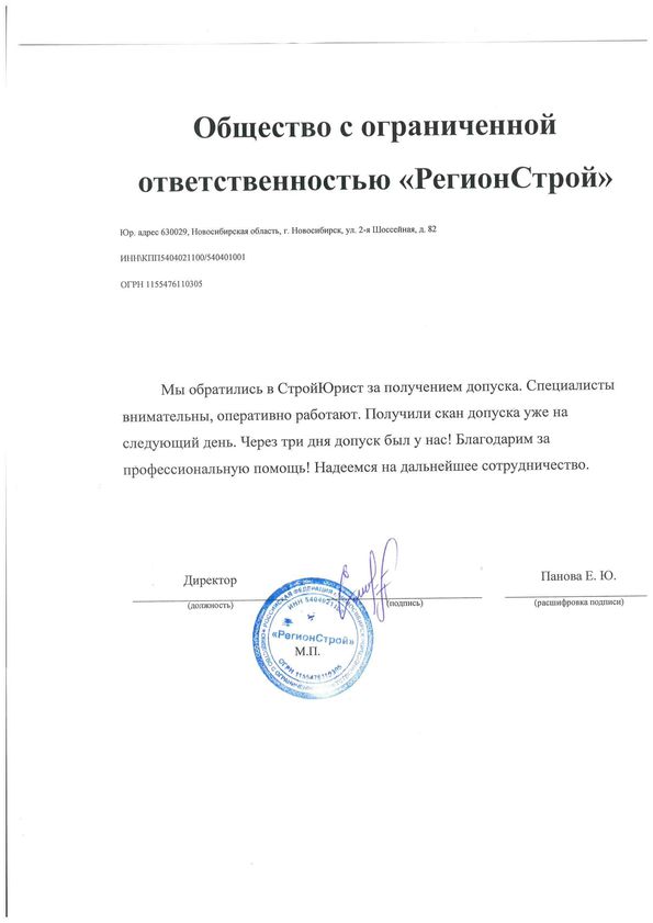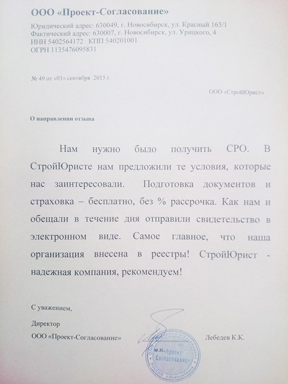 Отзывы клиентов "СтройЮрист" по вступлению в СРО в Кисловодске