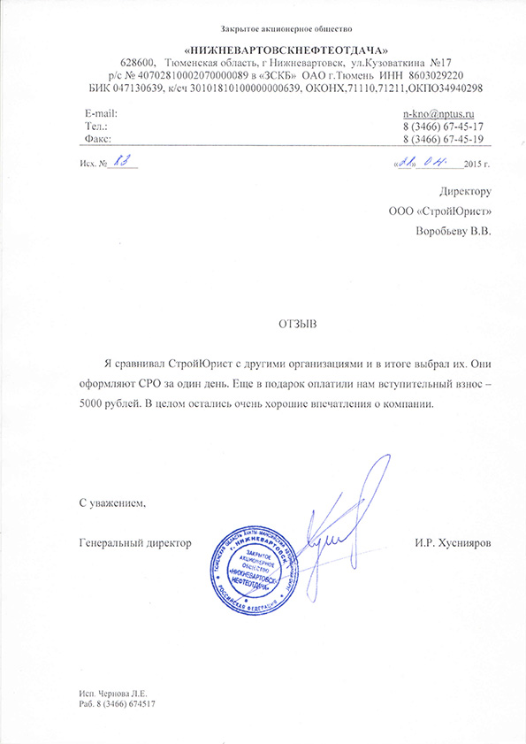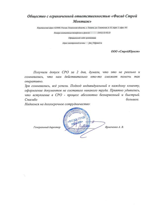 Отзывы клиентов "СтройЮрист" по вступлению в СРО в Кисловодске