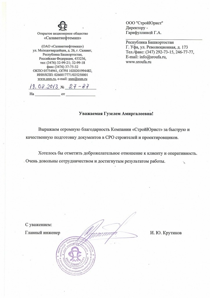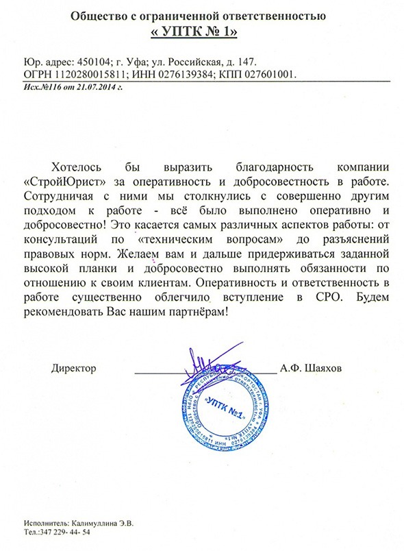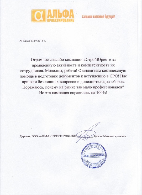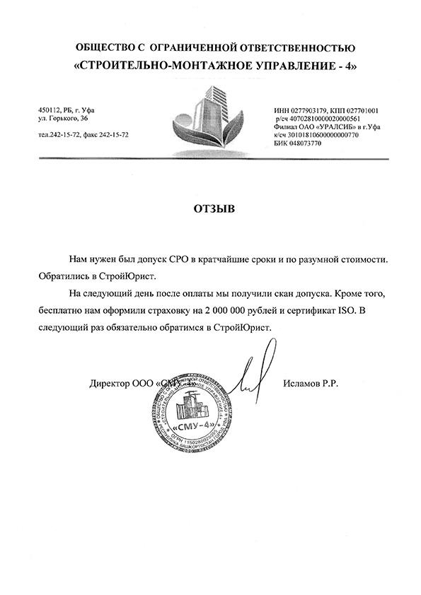 Отзывы клиентов "СтройЮрист" по вступлению в СРО в Кисловодске