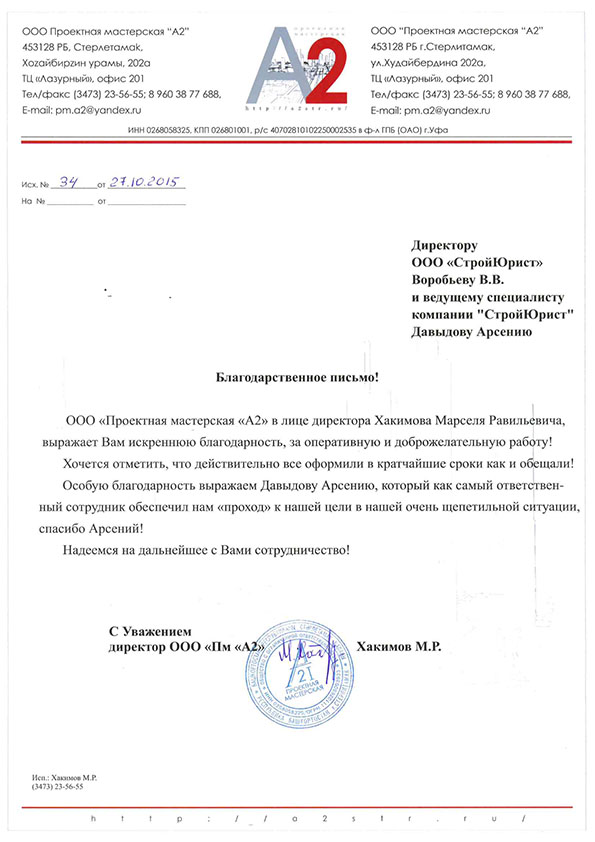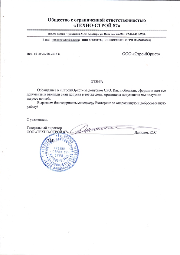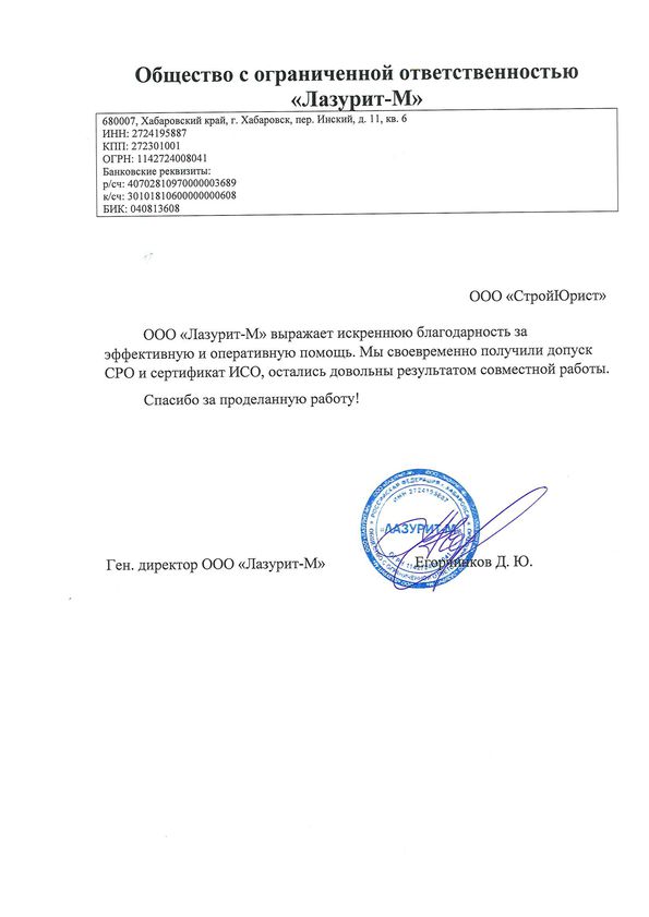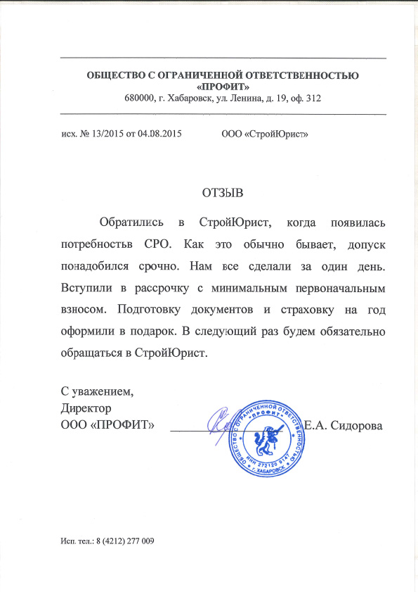 Отзывы клиентов "СтройЮрист" по вступлению в СРО в Кисловодске